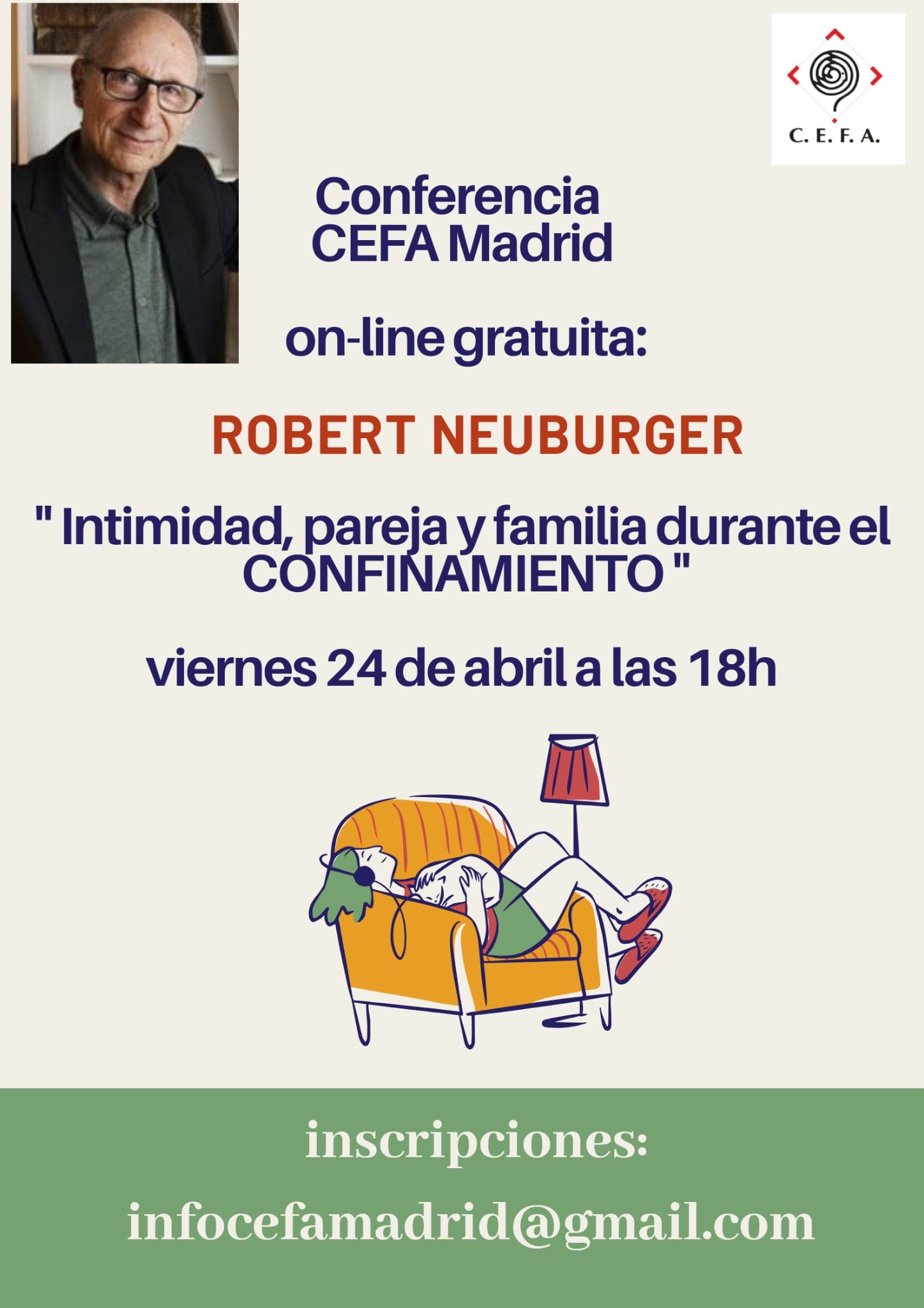 Nuestros colegas y amigos del Cefa Madrid nos invitan a participar en la Conferencia online que con el tema Intimidad pareja y familia” impartirá Robert Neuburger el próximo viernes 24 de abril a las 18:00.